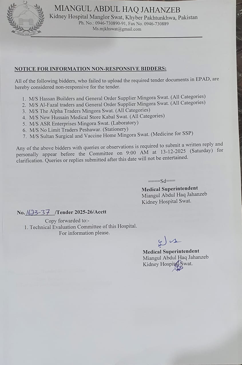 The only Kidney hospital of Malakand Divison is located on the main N-95 madyan road at Manglor Swat.